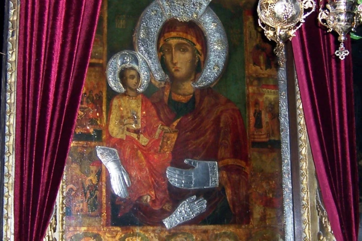 Eine besonders außergewöhnliche Geschichte spiegelt sich in der sogenannten Tricherusa-Ikone, der Ikone der Gottesmutter mit drei Händen, wider. Der Kirchenvater Johannes von Damaskus spielt dabei die Hauptrolle.