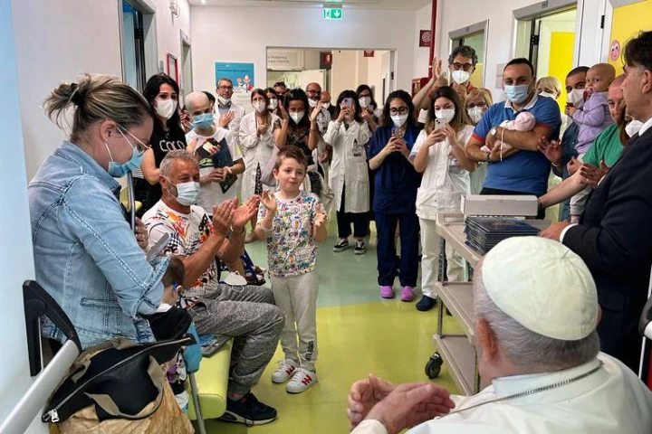 Der Vatikan hatte am Donnerstagmorgen die ersten Bilder von Papst Franziskus nach seiner Operation veröffentlicht. Sie zeigen Franziskus, wie er Menschen in anderen Abteilungen der Gemelli-Klinik besucht, darunter die Kinder-Onkologie.