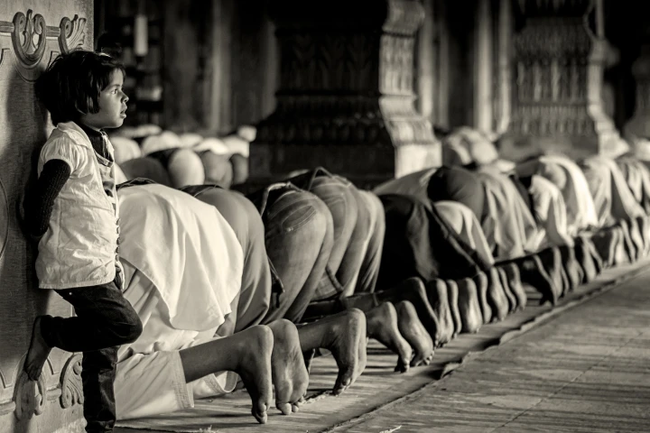 Muslime beim Gebet im Bundesstaat Madhya Pradesh, Indien.