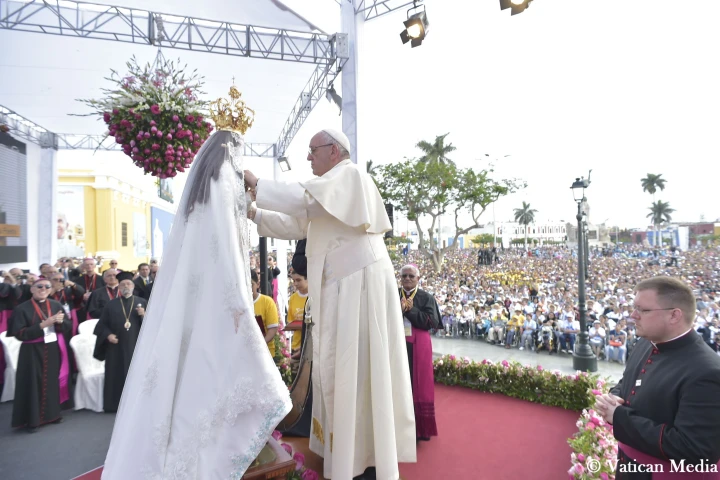 Papst Franziskus krönt die Jungfrau von der Tür von Otuzco am 20. Januar 2018