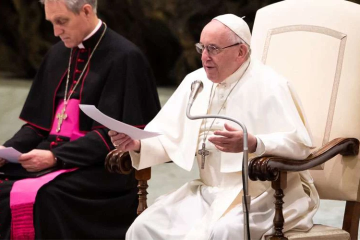 Papst Franziskus in der Audienzhalle Paul VI. im Vatikan.