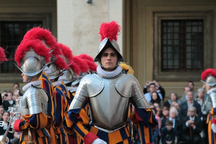 Die Schweizergarde, deren Motto "Mut und Treue" ist, ist die kleinste und älteste Armee der Welt. Sie hat eine Stärke von 120 Mann.