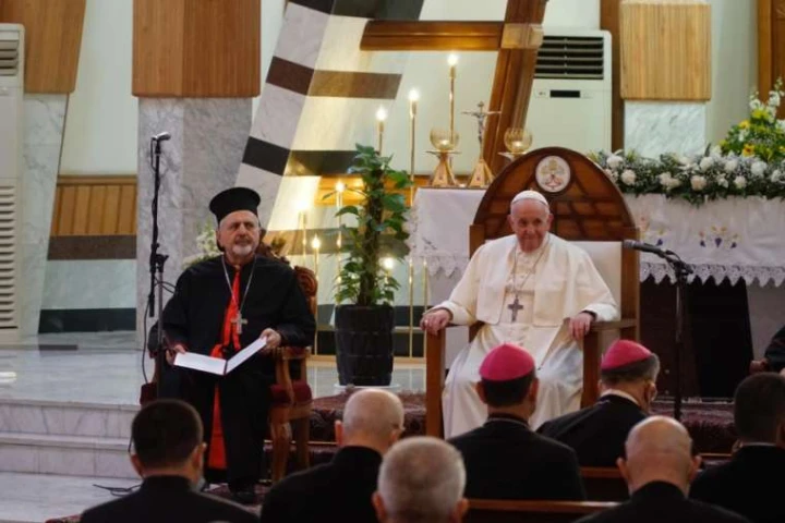 "Ihr Tod erinnert uns nachdrücklich daran, dass Anstiftung zum Krieg, Haltungen des Hasses, Gewalt und Blutvergießen mit den religiösen Lehren unvereinbar sind", betonte Papst Franziskus am heutigen Freitag gegenüber Ordensleuten, Katecheten und Klerikern in der Kathedrale Unserer Lieben Frau der Erlösung in Bagdad.