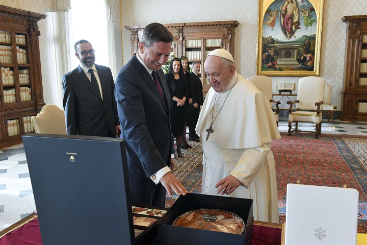 Präsident Pahor wiederum schenkte eine Sammlung typisch slowenischer Bienenstocktafeln und ein Buch über Bienen und ihre Beziehung zum Menschen sowie eine "potička", einen typisch slowenischen Kuchen, den der Papst nachweislich kennt und schätzt - eine seiner Nichten, Maria Ines, ist mit einem slowenischen Mann verheiratet.