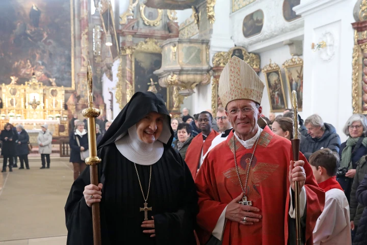 Die neue Äbtissin war am 30. November 1990 in die Abtei St. Walburg eingetreten. Auf den Tag genau 34 Jahre später empfing sie die Äbtissinnenweihe. „Dass ich heute, am 30. November 2024, meine Äbtissinnenweihe empfange, erfüllt mich mit großer Dankbarkeit gegenüber Gott und allen Menschen, die zu meinem Leben gehören“, betonte sie. „Damals wie heute war und bin ich sicher: St. Walburg ist der richtige Ort für mich. Hier fühle ich mich zu Hause.“