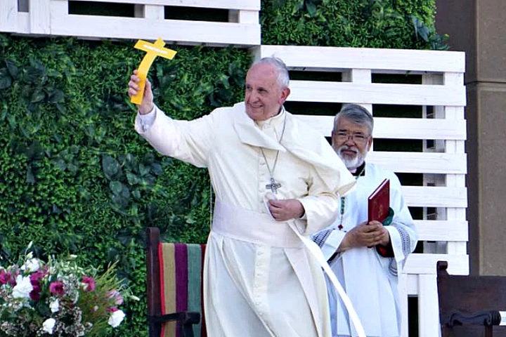Überall ist es zu lesen, das Motto dieser Reise von Papst Franziskus: MI PAZ LES DOY – zu Deutsch: "Meinen Frieden gebe ich Euch". Das Zitat aus dem heiligen Evangelium nach Johannes (Joh 14,27) schmückt Kreuze und T-Shirts, Plakate und Käppis.