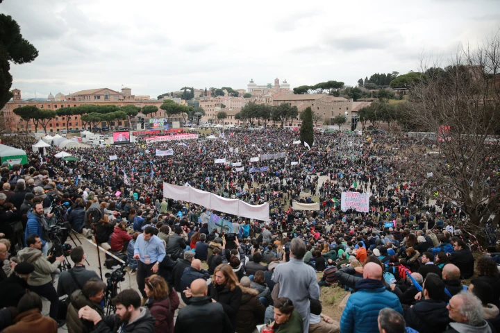 Pilloni kommentierte: "Die italienischen Gesetzgeber wollen bis Donnerstag warten, weil sie durch dieses Ereignis hier sehr beunruhigt sind. Wenn eine Million Menschen teilnehmen, dann stellt das ein Problem für sie dar. Wenn es zwei Millionen Menschen sind – ein größeres Problem. Alle Augen richten sich auf diesen Platz."
