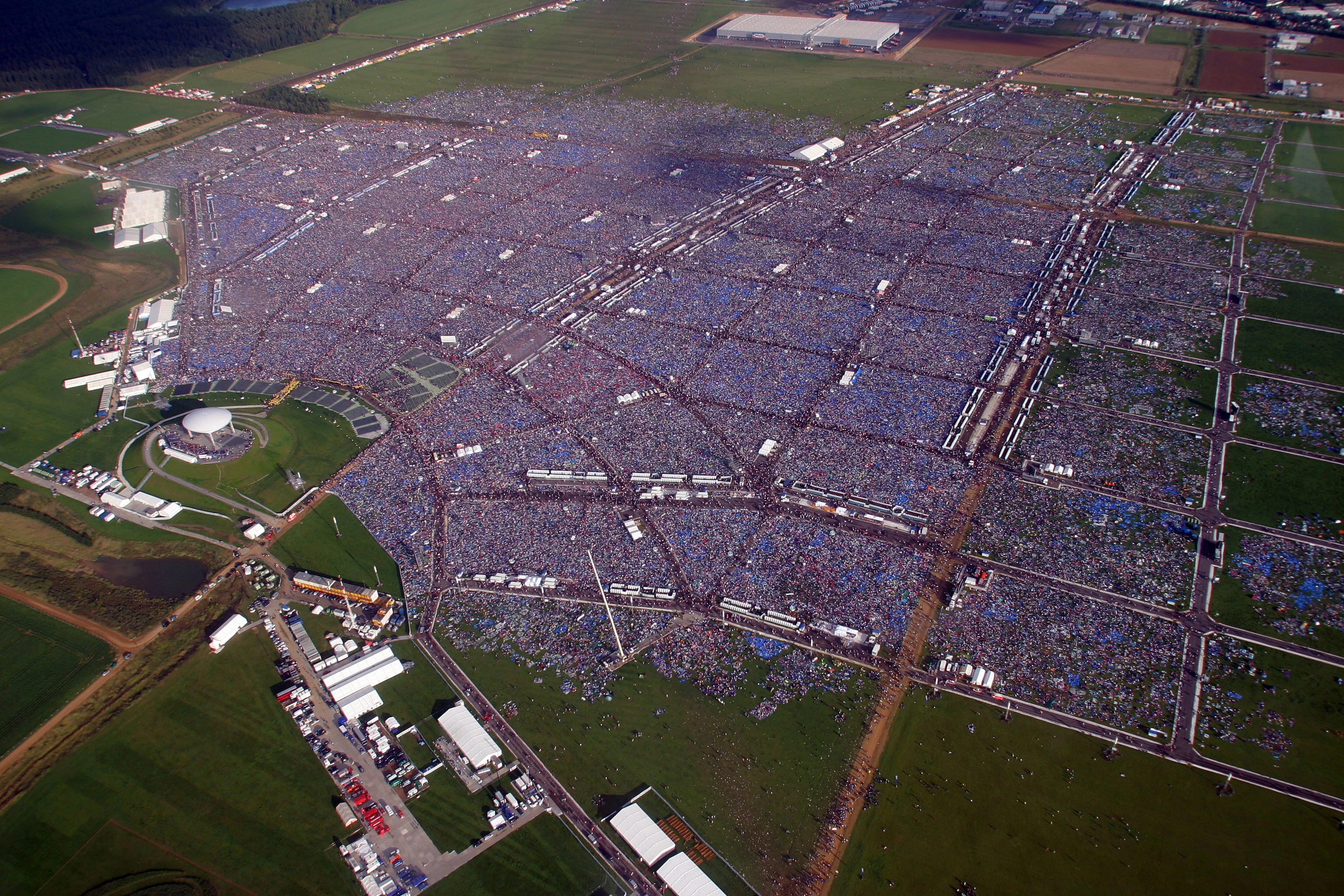 Über eine Million Weltjugendtagspilger auf dem Marienfeld bei Kerpen (Rhein-Erft-Kreis) vor der Vigilfeier des Weltjugendtags (20. August 2005)