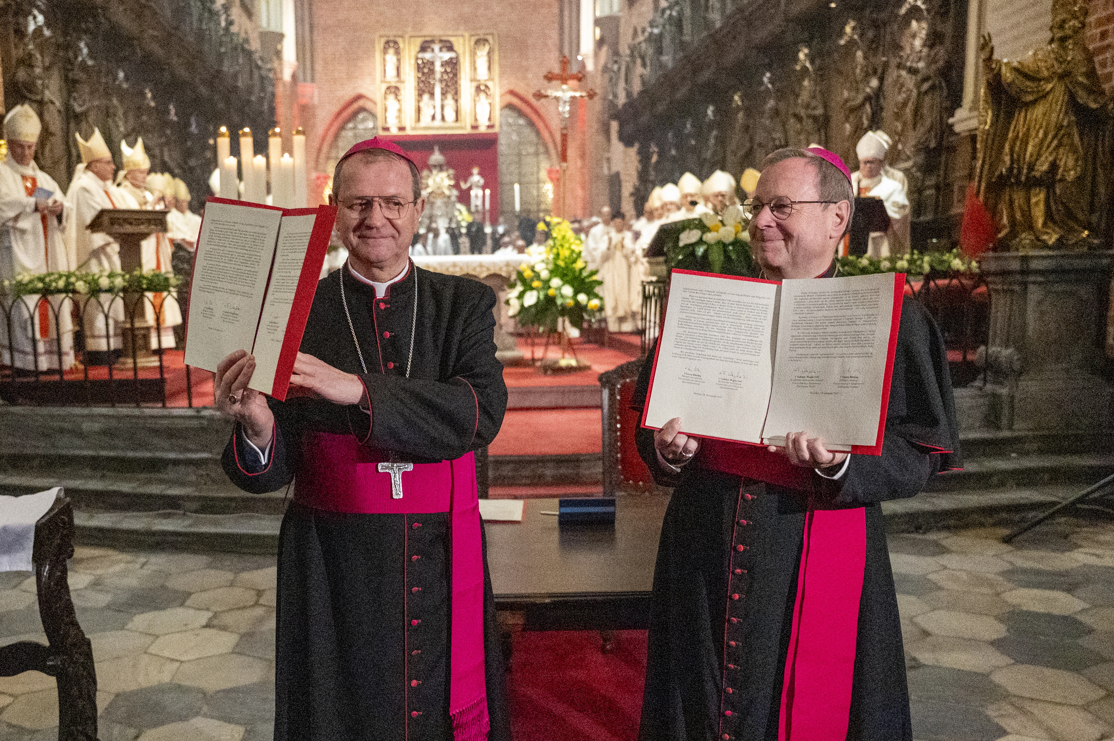 In einer gemeinsamen Erklärung, die in Breslau unterzeichnet wurde, hielten Bischof Georg Bätzing, der DBK-Vorsitzende, und Erzbischof Tadeusz Wojda, der Vorsitzende der polnischen Bischofskonferenz, am Dienstag fest: „Die von den polnischen Bischöfen gereichte Hand wurde von den deutschen Bischöfen in ihrem Antwortschreiben freudig ergriffen.“