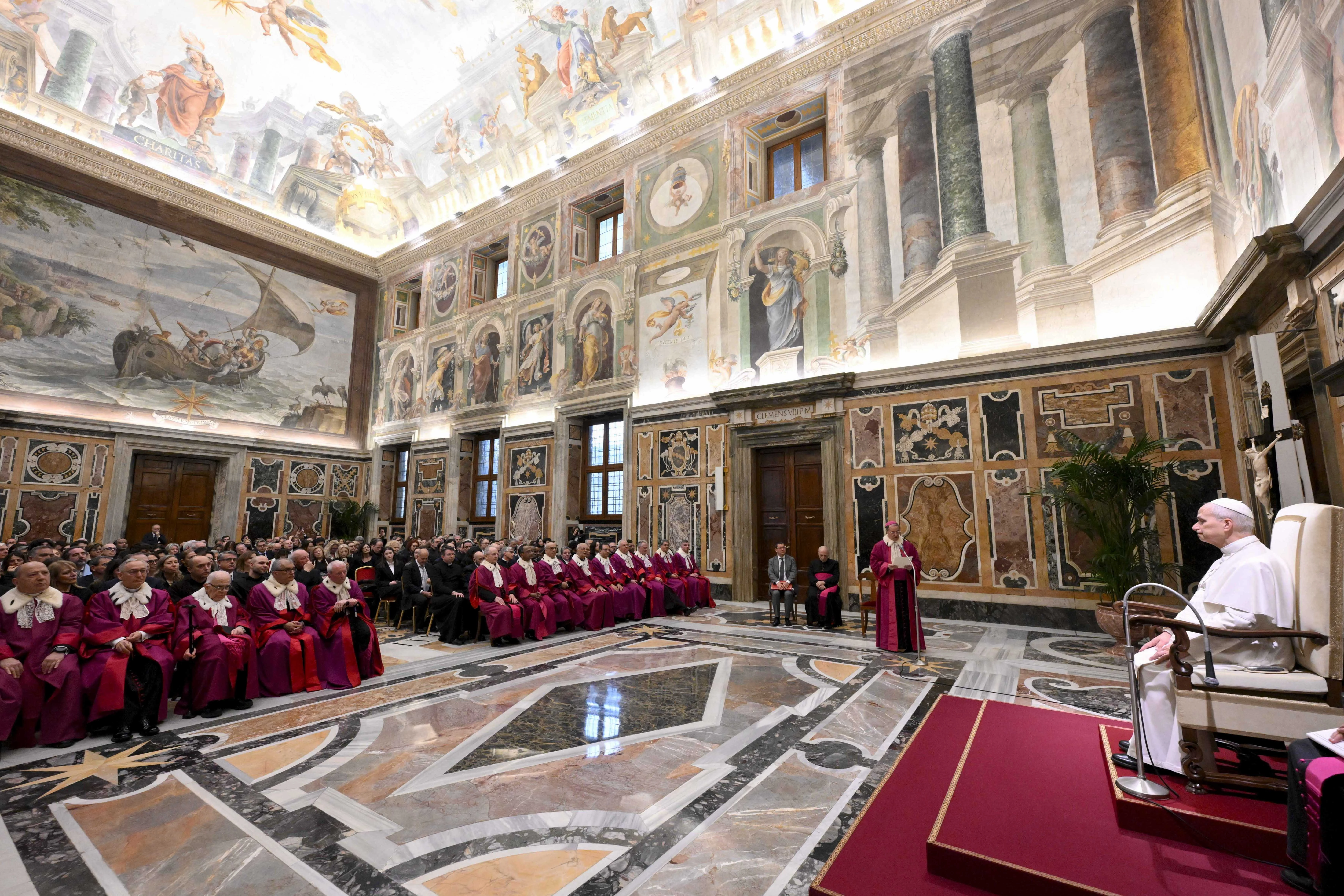 Am Ende seiner Ansprache erinnerte Papst Leo die Richter daran, dass sie dazu berufen sind, „die Wahrheit streng, aber ohne Starrheit zu bewahren“ und Nächstenliebe „ohne Unterlassung“ zu üben.